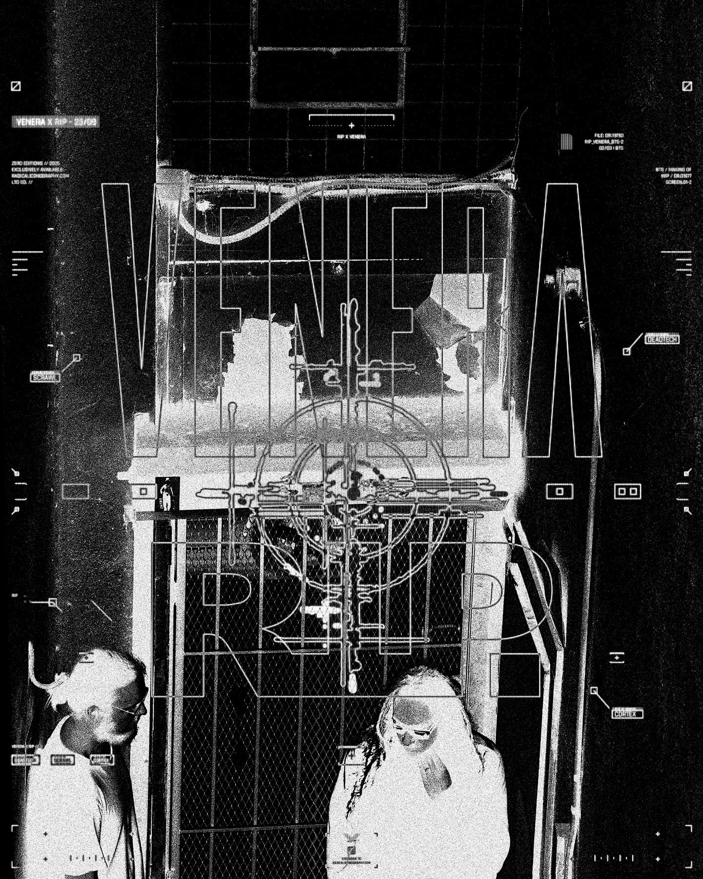 About Radical Iconography Production (RIP) Founded by artist Jesse Draxler, RIP is a fashion and music label dedicated to transforming sound and narrative into iconic visual form through monochromatic design and editorial-grade photography. Past collaborations include World Peace, Banks Violette, and now VENERA, each treating apparel as a distilled extension of an artist’s creative universe. Draxler’s work is deeply rooted in music culture, spanning album art, campaigns, and stage imagery across the heavy and experimental scenes.