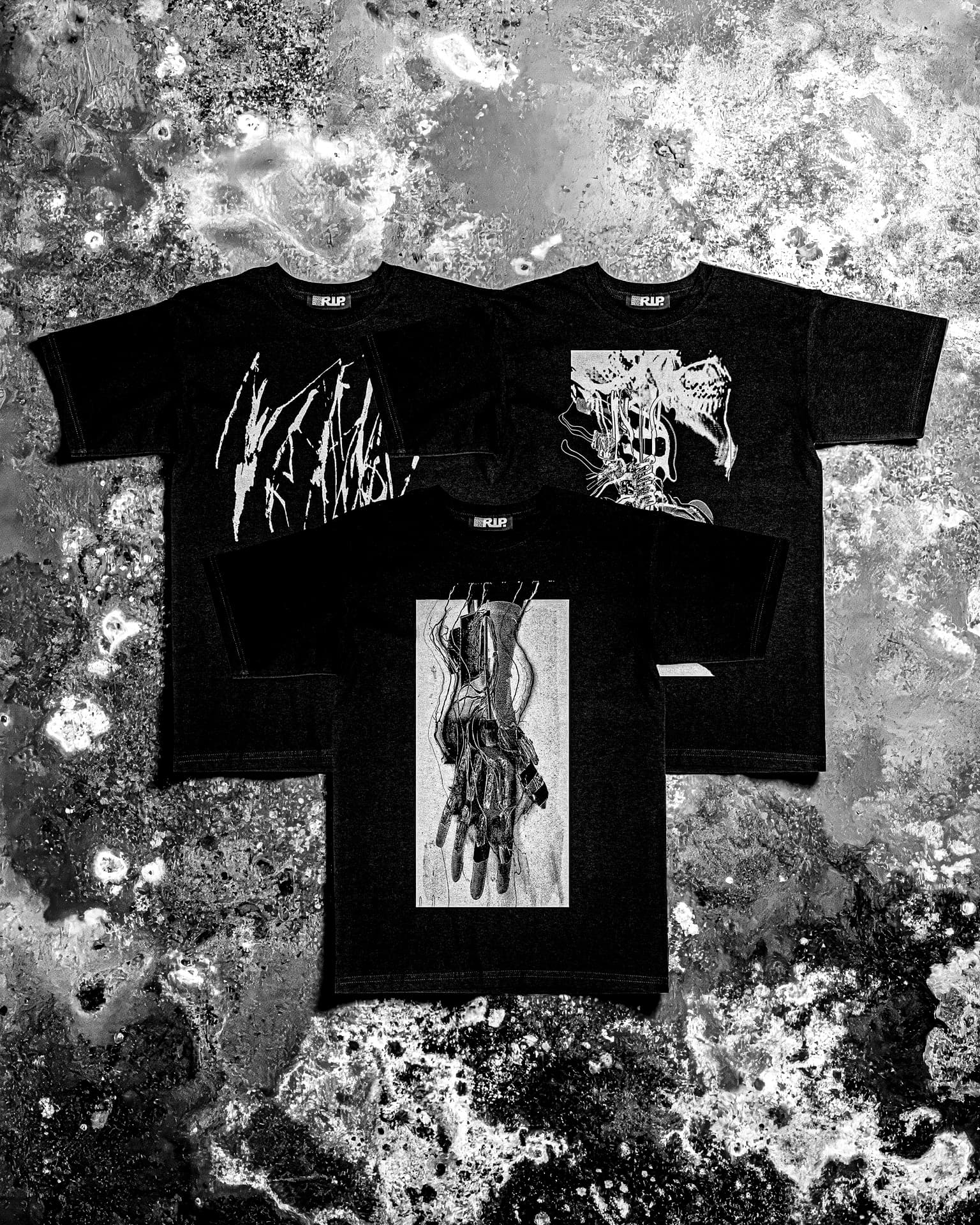 Instead of traditional merchandise, RIP approaches apparel as signal over ornament, clothing as a distilled narrative and an extension of the band’s sonic world.